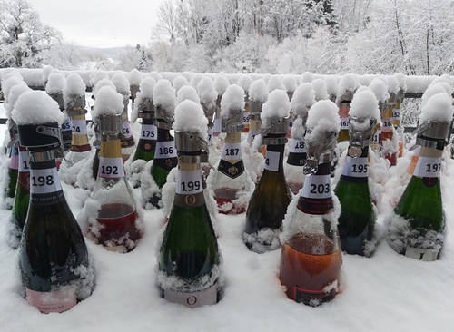 Nun folgt die Flaschengärung in lichtgeschützten Kellern bei einer konstanten Temperatur von rund 12°C, die für die Schaumbildung verantwortlich ist.